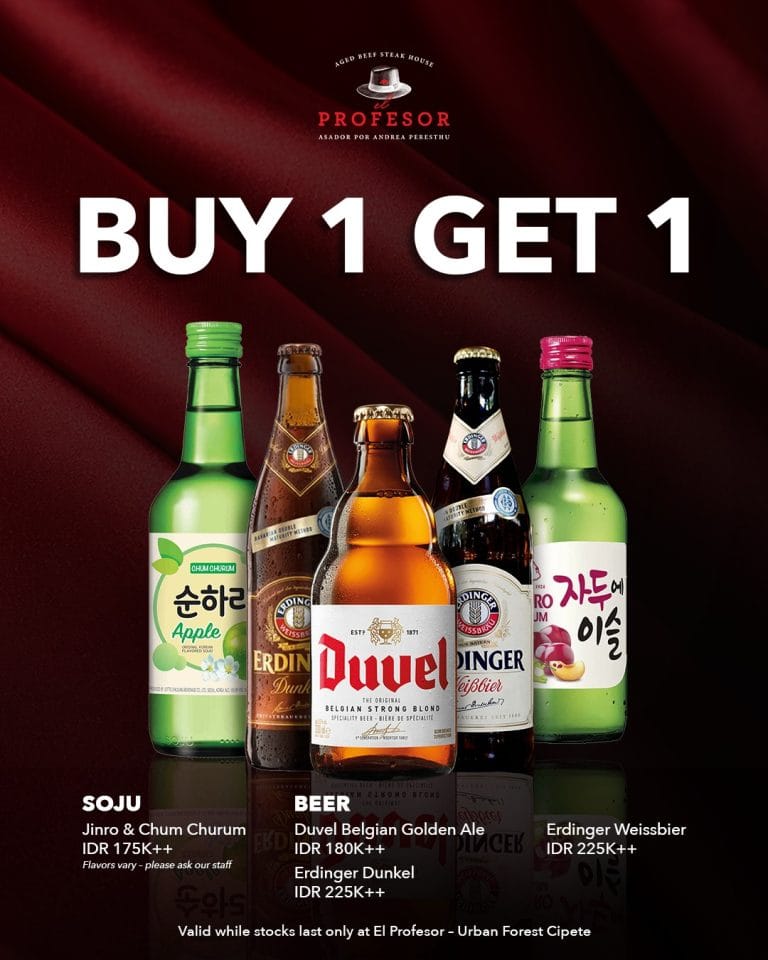 El Profesor’s menu focuses on beef steaks, grilled meats, and sliders. Favorites from the mains are T-Bone Steaks, Txuleton Spanish Tomahawk, Jurgen Rosemann Wagyu Schnitzel, and Smoked Wagyu Brisket Sliders. As for non-meat-eaters, El Profesor offers a selection of Mediterranean Salads, Seafood Pasta, Mac & Cheese Parmigiano, and choices of Indonesian Fried Rice. Drinks are prepared by the baristas, offering a variety of beverages, from signature cocktails to specialty coffee by Javanegra.